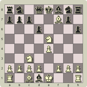 1.e4 e5 2.Sf3 d6 3.Lc4 Lg4 4.Sc3 h6 5.Sxe5 Lxd1??
