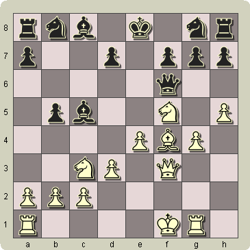 1.e4 e5 2.f4 exf4 3.Lc4 Dh4+ 4.Kf1 b5? 5.Lxb5 Sf6 6.Sf3 Dh6 7.d3 Sh5 8.Sh4 Dg5 9.Sf5 c6 10.g4 Sf6 11.Tg1! cxb5? 12.h4 Dg6 13.h5 Dg5 14.Df3 Sg8 15.Lxf4 Df6 16.Sc3 Lc5 17.Sd5 Dxb2 18.Ld6 Lxg1 19.e5! Dxa1+ 20.Ke2 Sa6 21.Sxg7+ Kd8 22.Df6+ Sxf6 23.Le7# 1-0